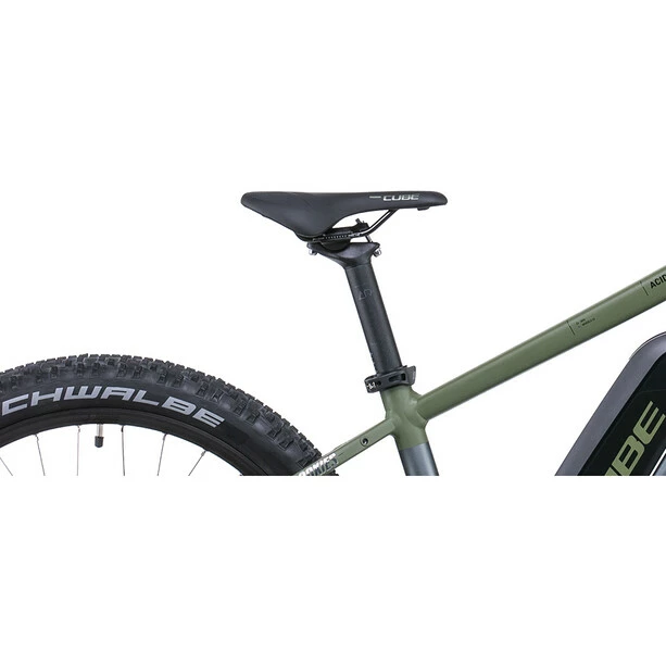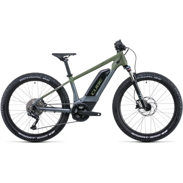 Vermutlich hatte man bei Bosch bei der Entwicklung seiner hochwertigen Antriebssysteme kein (perfekt proportioniertes) Kinderrad vor Augen. Was Cube aber nicht davon abgehalten hat, ein solches System gekonnt in den Acid 240 Hybrid Rookie Rahmen zu integrieren. In diesem Junioren E-Bike Chassis steckt das gleiche Design und die gleiche Technologien wie in den E-Mountainbikes für Erwachsene – dadurch ist jede Menge Fahrspaß bei zugleich hoher Sicherheit garantiert! Die Züge hat Cube sauber ins Innere verlegt, was den Wartungsaufwand maßgeblich reduziert, außerdem gibt es Montagepunkte für einen CUBE Seitenständer.. Außerdem haben sie das Bike mit einem dünneren Lenker mit dünneren Griffen ausgestattet, die kleine Hände bequem und sicher greifen können. Last, but not least: die zuverlässige, breit gefächerte 10-Gang Schaltung von Shimano und leistungsstarke Hydraulik Scheibenbremsen für sicheres, kontrolliertes Bremsen, selbst bei übermotivierter Fahrweise. Einfach aufsitzen und los!