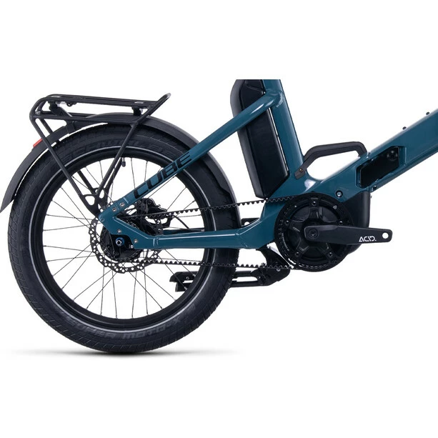 Ein tolles Bike, das sich dem (bewegten) Lifestyle seines Fahrers flexibel anpasst – so lautete Cubes Devise bei der Entwicklung des brandneuen Fold Hybrid 500. Also treffen hier ein leistungsstarker Bosch Performance Antrieb und ein 500 Wh starker Akku auf einen praktischen und leicht zu bedienenden Faltmechanismus. Der Vorteil: tatkräftige Unterstützung in Bewegung plus kompaktes Design zum platzsparenden Lagern oder Transportieren. Die schlichte, robuste und so gut wie wartungsfreie Shimano Nexus 5-Gang Nabenschaltung in Verbindung mit dem robusten Gates CDX Riemenantrieb hat immer den richtigen Gang im Programm. Auf dem Gepäckträger (ein Front-Gepäckträger ist nachrüstbar) reist alles, was man braucht, von A nach B. Was noch? Schutzbleche, ein stabiler Doppelbeinständer zum Abstellen und ein robuster Tragegriff. Alles da – was will man mehr?