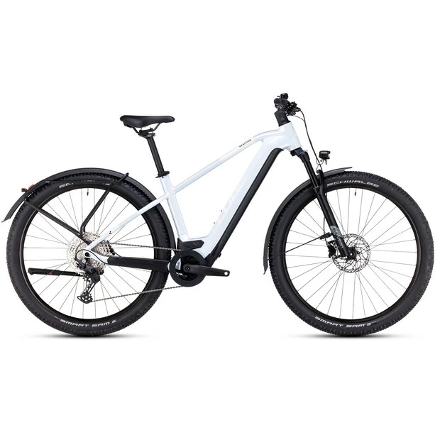 Das Reaction Hybrid Pro Allroad ist CUBEs „Schweizer Taschenmesser“ unter den E-Bikes mit Bosch Antrieb. Sein hochkapazitiver PowerTube Akku und der geschmeidig arbeitende Bosch CX Motor der vierten Generation liefern kraftvolle Unterstützung bei längeren Wochenendradtouren ebenso wie auf dem Weg in die Arbeit. Dabei wechselt die breit gefächerte Deore 11-fach Schaltung von Shimano präzise von Gang zu Gang und macht selbst steile Anstiege zum Spaziergang. Volle Kontrolle in jeder Situation ist das Spezialgebiet der leistungsstarken hydraulischen Scheibenbremsen in Kombination mit 2.6 Zoll breiten Schwalbe Reifen. Außerdem wurde dem Bike für top Fahrkomfort eine einfach einstellbare Luftfedergabel spendiert. Und einen Gepäckträger, Schutzbleche, einen Seitenständer und Lichter für top Support und Sicherheit auf dem Weg durch City oder für den Wochenendausflug.