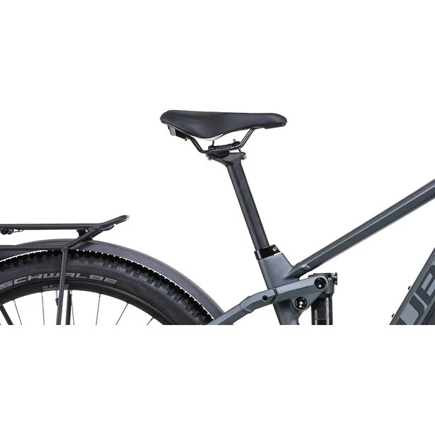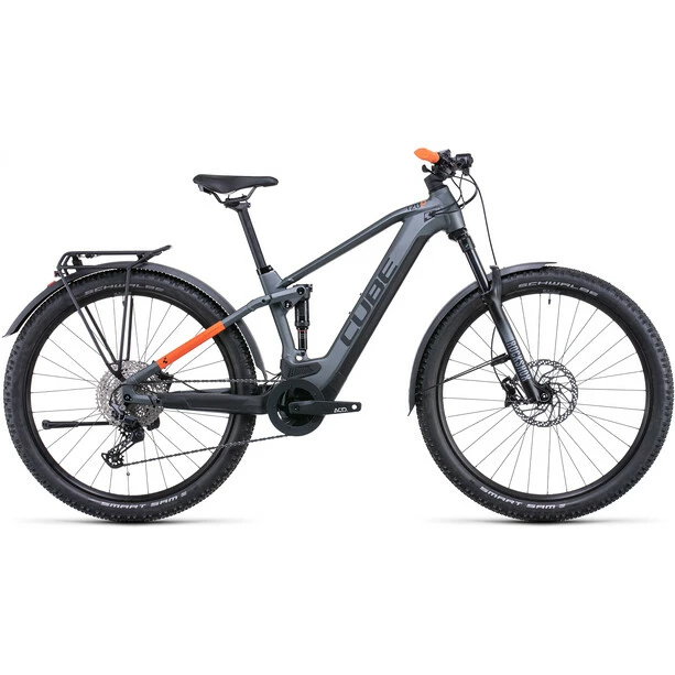 Schöne Bikes mit hohem Nutzen sind Cubes Spezialität. Insofern haben sie den Stereo Hybrid 120 Pro Allroad Rahmen mit ebenso robusten wie eleganten – und bei Bedarf einfach abnehmbaren – Schutzblechen und Gepäckträger ausgerüstet. Das Chassis selbst ist genauso clever konstruiert: Beispielsweise verschwindet der hochkapazitive 625 Wh starke Akku dank dem Modular Battery System dezent im Rahmendesign und ist dort vor Schmutz und Spritzwasser geschützt. Das über die Jahre immer weiter überarbeitete Viergelenker-Design dämpft Schläge und Vibrationen auf ruppigen Trails effektiv ab. Und die Comfort Geometry mit einem Boost 148 Hinterbau und 1.5 Zoll Steuerrohr für präzises Lenken optimiert das allgemeine Handling. Praktisch und selbstverständlich: Mit dem Size Split System findet jeder und jede die für sich perfekte Kombination aus Rahmen- und Laufradgröße.