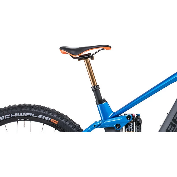 Klein, aber perfekt proportioniert: Das Stereo Hybrid 140 HPC Actionteam 625 ist der Inbegriff von erstklassiger All-Mountain-E-Bike-Performance. Shimano XT Bremsen mit 4-Kolben Konstruktion treffen hier auf supergriffige Schwalbe Magic Mary SuperTrail und Big Betty SuperGravity 2.4 Zoll Reifen, das Ergebnis: präziseste Geschwindigkeitskontrolle, und zwar bei allen möglichen und unmöglichen Bedingungen. Shimano steuert auch seine XT 12-Gang Schaltung bei, welche die Power aus den Beinen – und den Vortrieb des Bosch CX Motors (Generation 4) mit 625 Wh starkem Akku – feinabgestimmt auf die Newmen Evolution Laufräder und dann auf den Trail bringt. Für den letzten Trail-spezifischen Schliff sorgen die Fox 36 Float Factory Gabel, der Float X Factory Dämpfer und die versenkbare Sattelstütze mit Remote. Klarer Fall, hier hat man es mit einem echten Gewinner zu tun!