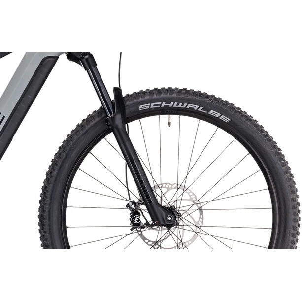 Weiterentwicklung ist der zweiter Vorname von CUBE, weshalb jetzt alle Stereo Hybrid 140 HPC Rahmen innerhalb des SizeSplit Systems auch mit einem 750 Wh starken Akku bepackt werden können – optimal unter einem Cover vor Matsch und Spritzwasser geschützt. Du profitierst also von der Power des Bosch CX Antriebs der vierten Generation mit kraftvollen 85 Nm Drehmoment, egal mit welchem Rahmen und wie lange du unterwegs bist. Eine Boost 148 Steckachse, große Lager und die All Mountain Geometry versprechen sicheres Handling, selbst wenn du die 140 mm Federweg hinten und 150 mm vorne voll ausreizt. Und weil sich Stürze trotzdem nicht immer vermeiden lassen, wurde dem Bike ein einfach austauschbares UDH Schaltauge von Sram spendiert. Im Inneren verlaufende Kabel und Züge reduzieren den Wartungsaufwand und geben dem cleanen Look dieses Carbonhauptrahmens den letzten Schliff.