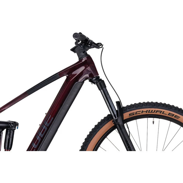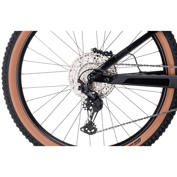 Weiterentwicklung ist der zweiter Vorname von CUBE, weshalb jetzt alle Stereo Hybrid 140 HPC Rahmen innerhalb des SizeSplit Systems auch mit einem 750 Wh starken Akku bepackt werden können – optimal unter einem Cover vor Matsch und Spritzwasser geschützt. Du profitierst also von der Power des Bosch CX Antriebs der vierten Generation mit kraftvollen 85 Nm Drehmoment, egal mit welchem Rahmen und wie lange du unterwegs bist. Eine Boost 148 Steckachse, große Lager und die All Mountain Geometry versprechen sicheres Handling, selbst wenn du die 140 mm Federweg hinten und 150 mm vorne voll ausreizt. Und weil sich Stürze trotzdem nicht immer vermeiden lassen, wurde dem Bike ein einfach austauschbares UDH Schaltauge von Sram spendiert. Im Inneren verlaufende Kabel und Züge reduzieren den Wartungsaufwand und geben dem cleanen Look dieses Carbonhauptrahmens den letzten Schliff.