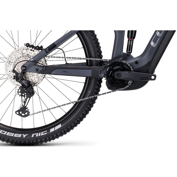 Weiterentwicklung ist der zweiter Vorname von CUBE, weshalb jetzt alle Stereo Hybrid 140 HPC Rahmen innerhalb des SizeSplit Systems auch mit einem 750 Wh starken Akku bepackt werden können – optimal unter einem Cover vor Matsch und Spritzwasser geschützt. Du profitierst also von der Power des Bosch CX Antriebs der vierten Generation mit kraftvollen 85 Nm Drehmoment, egal mit welchem Rahmen und wie lange du unterwegs bist. Eine Boost 148 Steckachse, große Lager und die All Mountain Geometry versprechen sicheres Handling, selbst wenn du die 140 mm Federweg hinten und 150 mm vorne voll ausreizt. Und weil sich Stürze trotzdem nicht immer vermeiden lassen, wurde dem Bike ein einfach austauschbares UDH Schaltauge von Sram spendiert. Im Inneren verlaufende Kabel und Züge reduzieren den Wartungsaufwand und geben dem cleanen Look dieses Carbonhauptrahmens den letzten Schliff.