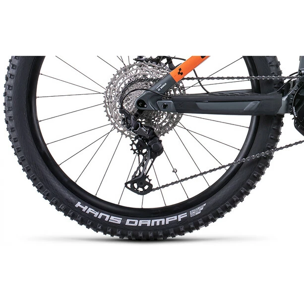Je besser die Abstimmung des Bikes, desto federleichter sein Handling. Und weil das so ist, hat das kompakte Stereo Hybrid 140 HPC SL 625 eine Fox 34 Rhythm Gabel und den dazu passenden Float DPS EVOL Dämpfer bekommen. Außerdem Newmen Laufräder mit 2.6 Zoll Reifen von Schwalbe. Das Ergebnis ist ein Fahrgefühl wie auf einem fliegenden Teppich. Für die optimale Übersetzung der Power des Bosch CX Motors (Generation 4) mit 625 Wh starkem Akku auf den Trail ist die leichtgängige, superzuverlässige Shimano XT 12-Gang Schaltung.