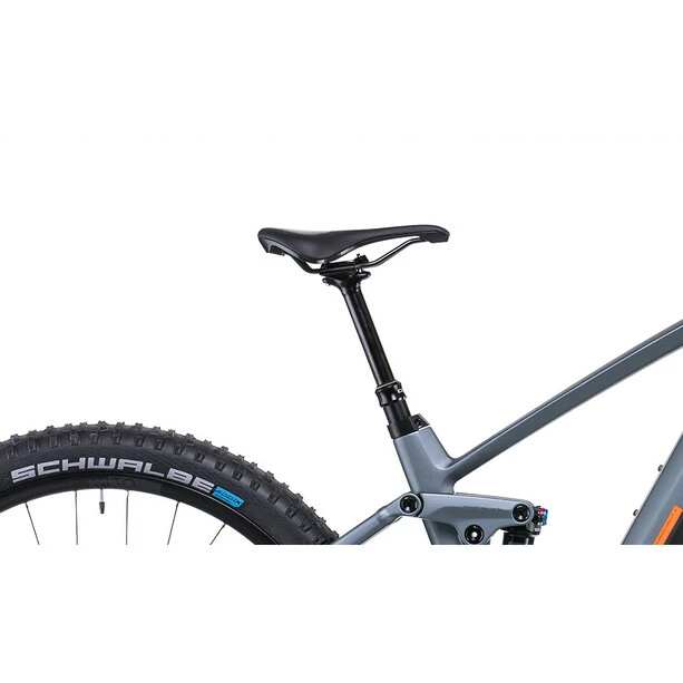 Der neue Stereo Hybrid 140 HPC 750 Rahmen wartet mit einer Menge Highlights auf. Eins davon ist das Modular Battery System, dank dem Cube einen hochkapazitiven 750 Wh starken Akku verbauen konnten, sodass man selbst bei ausgedehnten Trail-Abenteuern immer genügend Sprit im Tank hat. Weil die Züge innen verlaufen, begeistert das Chassis mit einem cleanen Look. Außerdem gibt es keine Kabellöcher im Bereich des Steuerrohrs, was wiederum die Stabilität optimiert. Sowohl der Akku als auch der Bosch CX Motor der vierten Generation sind perfekt vor Schmutz und Spritzwasser geschützt. Unschlagbares Handling und geringen Wartungsaufwand versprechen die Boost 148 Steckachse, große Lager und die ins Rahmeninnere verlegten Schalt- und Bremszüge. Last, but not least: die durchdachte All Mountain Geometry, die sowohl auf die Federungskinematik als auch das Bosch Antriebssystem optimal abgestimmt ist. Das Ergebnis ist ein stabiles, laufruhiges Bike, das Selbstvertrauen vermittelt und riesig Spaß macht! Ebenfalls von Shimano kommen die progressiven hydraulischen XT Scheibenbremsen mit 4-Kolben Konstruktion und großen Rotoren – ihr Spezialgebiet: sicheres Verzögern und Stoppen bei allen Bedingungen. Die Ausstattung komplett macht die versenkbare Sattelstütze mit Remote. Da fragt man sich doch, wie man überhaupt je ohne dieses Meisterwerk ausgekommen ist. Jetzt noch eine satte Brise Abenteuerlust zum Drüberstreuen und auf geht’s!