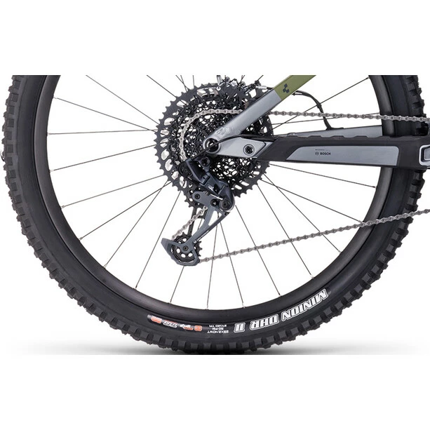 Weiterentwicklung ist der zweiter Vorname von CUBE, weshalb jetzt alle Stereo Hybrid 140 HPC Rahmen innerhalb des SizeSplit Systems auch mit einem 750 Wh starken Akku bepackt werden können – optimal unter einem Cover vor Matsch und Spritzwasser geschützt. Du profitierst also von der Power des Bosch CX Antriebs der vierten Generation mit kraftvollen 85 Nm Drehmoment, egal mit welchem Rahmen und wie lange du unterwegs bist. Eine Boost 148 Steckachse, große Lager und die All Mountain Geometry versprechen sicheres Handling, selbst wenn du die 140 mm Federweg hinten und 150 mm vorne voll ausreizt. Und weil sich Stürze trotzdem nicht immer vermeiden lassen, wurde dem Bike ein einfach austauschbares UDH Schaltauge von Sram spendiert. Im Inneren verlaufende Kabel und Züge reduzieren den Wartungsaufwand und geben dem cleanen Look dieses Carbonhauptrahmens den letzten Schliff.