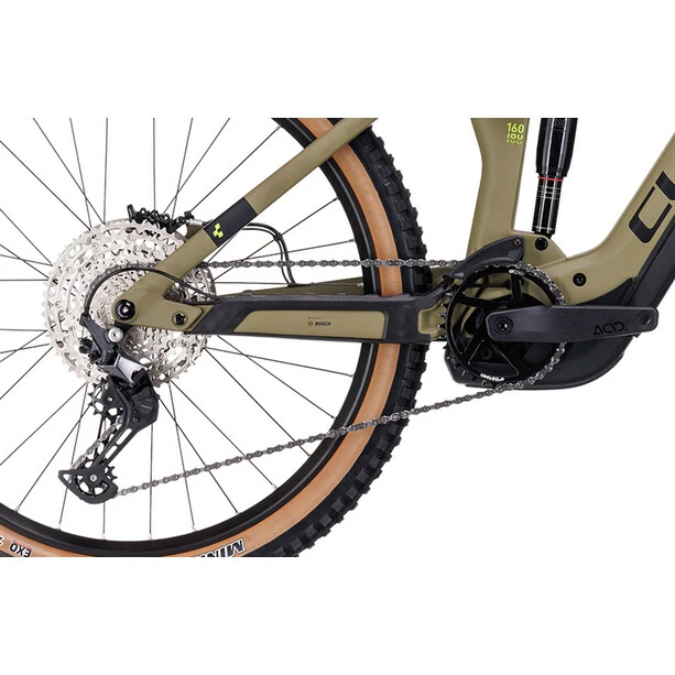 Ein Enduro-taugliches Fully mit E-Antrieb, gibt es sowas? Klar, das gibt’s, und es heißt Stereo Hybrid 160 HPC. Sein Carbonhauptrahmen kann dank Modular Battery System neben einem Bosch Motor der vierten Generation auch noch einen bis zu 750 Wh starken Akku aufnehmen. Und weil das Chassis trotzdem in allen Größen verfügbar ist, findest du auf jeden Fall das perfekte Set-up für dich und deine Anforderungen. CUBE hat bei der Entwicklung zudem viel Wert auf Vielseitigkeit und ein praktisches Handling gelegt. Deshalb gibt es genügend Platz für einen Flaschenhalter und du kannst die Akku-Abdeckung einfach per Druckknopf öffnen. Und dann die rennorientierte Geometrie, die Boost 148 Steckachse und das 1.5 Zoll Steuerrohr – allesamt Garanten für ein superpräzises Fahrgefühl und top Bodenhaftung, selbst auf verblockten oder sehr ruppigen Trails. Dazu bedeuten eine Trunnion Dämpferaufnahme, große Umlenkpunkte und im Rahmeninneren verlaufende Züge wenig Wartungsaufwand – und dadurch mehr Zeit für maximalen Offroad-Bike-Spaß am Berg!