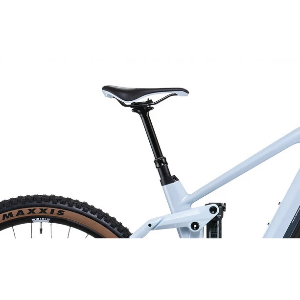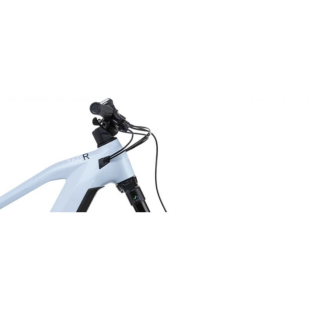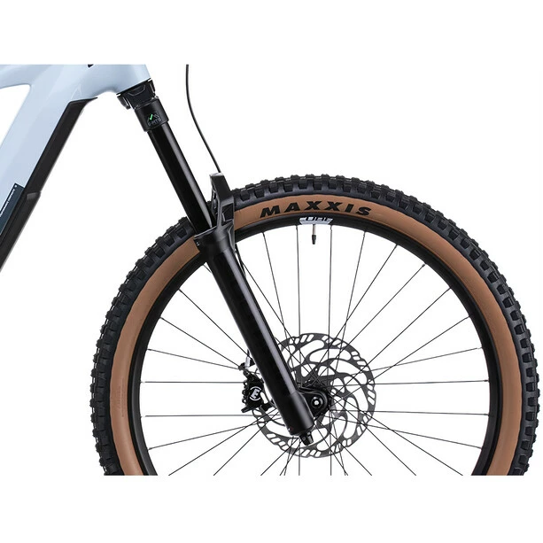 Mit dem Stereo Hybrid 160 HPC Race 625 hat Cube ein stylishes und extrem leistungsstarkes Chassis entwickelt, das die Federleistung eines Enduro-Modells mit den Vorzügen eines Bosch E-Bikes kombiniert. Im Details sieht das so aus, als dass der Bosch Motor der vierten Generation dank des Modular Battery System vollständig und fast unsichtbar im Unterrohr des Carbonhauptrahmens integriert ist. Ein stoßfestes Cover schützt den Akku zuverlässig und lässt sich auf Knopfdruck entfernen, sodass man ihn ganz einfach herausnehmen kann. Auch das Schloss verschwindet elegant hinter dem Cover. Der Rahmen bietet Montagepunkte für einen Flaschenhalter, außerdem haben sie ihn mit einer Trunnion Dämpferaufnahme, extragroßen Lagern, einer Boost 148 Steckachse und einem 1.5 Zoll Steuerrohr für superpräzises Lenken selbst bei viel Speed ausgerüstet. Und dank der cleveren Race-orientierten Geometrie macht man sich jeden noch so taffen Trail in Nullkommanichts Untertan.