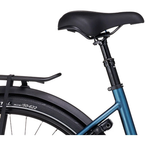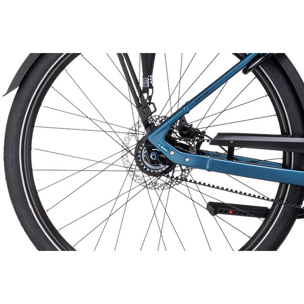 Schlicht, elegant, sicher und praktisch – kurz: der Supreme Hybrid Rahmen. Für ein wertvolles Plus an Reichweite kann er jetzt Akkus mit bis zu 625 Wh aufnehmen, ohne dass dies seine schlanke, sportliche Optik beeinträchtigen würde. Auf dem semi-integrierten Gepäckträger reist sämtliches Hab und Gut sicher verstaut von A nach B. Eine wartungsarme Nabenschaltung bringt die Power des E-Antriebs von Bosch top übersetzt und nathlos auf die Straße. Seine authentische Optik verdankt das Chassis übrigens den glatten, im Smooth Welding Verfahren gestalteten Schweißnähten. Und weil es sich hier um einen Tiefeinsteiger handelt, geht das Auf- und Absteigen supereinfach und unkompliziert.