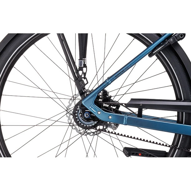 Schlicht, elegant, sicher und praktisch – kurz: der Supreme Hybrid Rahmen. Für ein wertvolles Plus an Reichweite kann er jetzt Akkus mit bis zu 625 Wh aufnehmen, ohne dass dies seine schlanke, sportliche Optik beeinträchtigen würde. Auf dem semi-integrierten Gepäckträger reist sämtliches Hab und Gut sicher verstaut von A nach B. Eine wartungsarme Nabenschaltung bringt die Power des E-Antriebs von Bosch top übersetzt und nahtlos auf die Straße. Seine authentische Optik verdankt das Chassis übrigens den glatten, im Smooth Welding Verfahren gestalteten Schweißnähten. Und weil es sich hier um einen Tiefeinsteiger handelt, geht das Auf- und Absteigen supereinfach und unkompliziert.