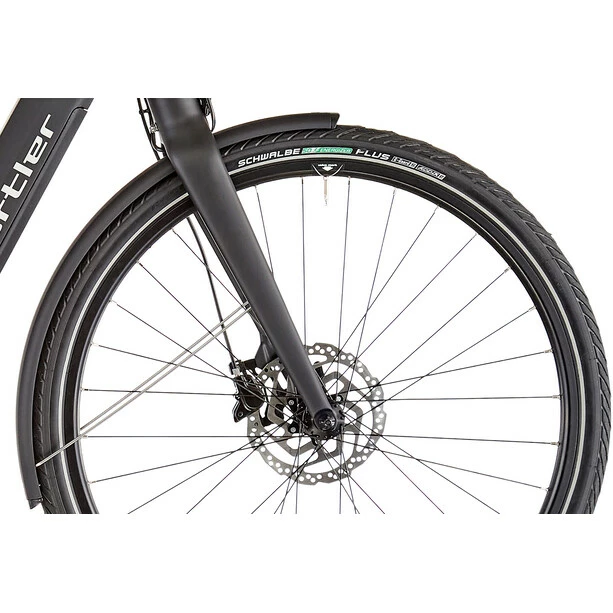Das E-Bike der neuesten Generation überzeugt durch seinen leistungsstarken Shimano STePS E-6100 Mittelmotor. City Biker kommen so nicht nur schneller voran, sondern können auch erheblich weitere Strecken zurücklegen. Neben dem modernen Elektroantrieb überzeugt das Montreux vor allem auch durch seine durchdachte und auf Langlebigkeit setzende Detailausstattung. Für die richtige Gangwahl sorgt die Shimano Nexus 8 Gang Nabenschaltung, gebremst wird mit hydraulischen Shimano Scheibenbremsen, die zu jedem Zeitpunkt und bei jeder Witterung für absolute Verlässlichkeit sorgen. Die Schwalbe Energizer Plus Reifen überzeugen durch geringen Rollwiderstand und einen sehr guten Grip – Fahrkomfort ist somit garantiert.