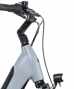 Praktisch und komfortabel beginnt der Tag schon mit dem Verlassen der Wohnung. Das „EINS AP-8R“ ist in seinem tiefen Durchstieg mit einem Tragegriff versehen, damit du das Bike einfach nehmen und nach draußen tragen kannst. Noch schnell die Sattelstütze und den Vorbau passend einstellen – alles übrigens werkzeugfrei per Schnellspanner -, die Packtaschen am MIK HD-Systemgepäckträger einklicken und schon geht’s los.