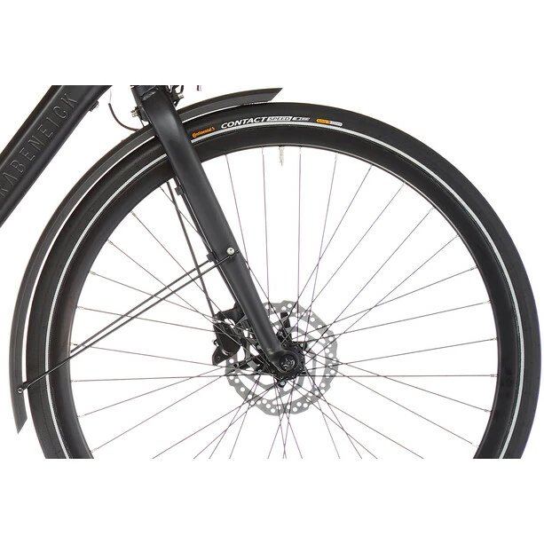 Weniger ist mehr: Neben dem unsichtbaren E elektrisiert das geringe Gewicht – je nach Rahmengröße sind es lediglich 18,6 kg. Mit seinem puristischem Design und dem Verzicht auf überflüssige Ausstattungsdetails ist das TX-E für temporeiche Asphalt-Fahrten prädestiniert. Der extrem leichte, steife Aluminium-Rahmen, hydraulische Scheibenbremsen und die Contact Speed Bereifung von Continental erlauben dynamisches Handling und sichere Kontrolle – selbst bei hohem Speed. Cleveres Urban-Feature: An den Wingee-Schutzblechen mit unscheinbaren Packtaschenbügeln können Einkäufe oder Gepäck befestigt werden.